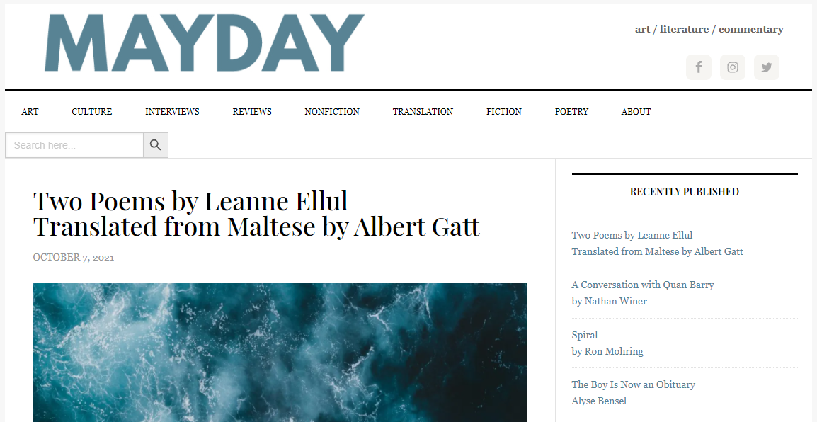 Two poems translated to English by Albert Gatt published in MAYDAY magazine