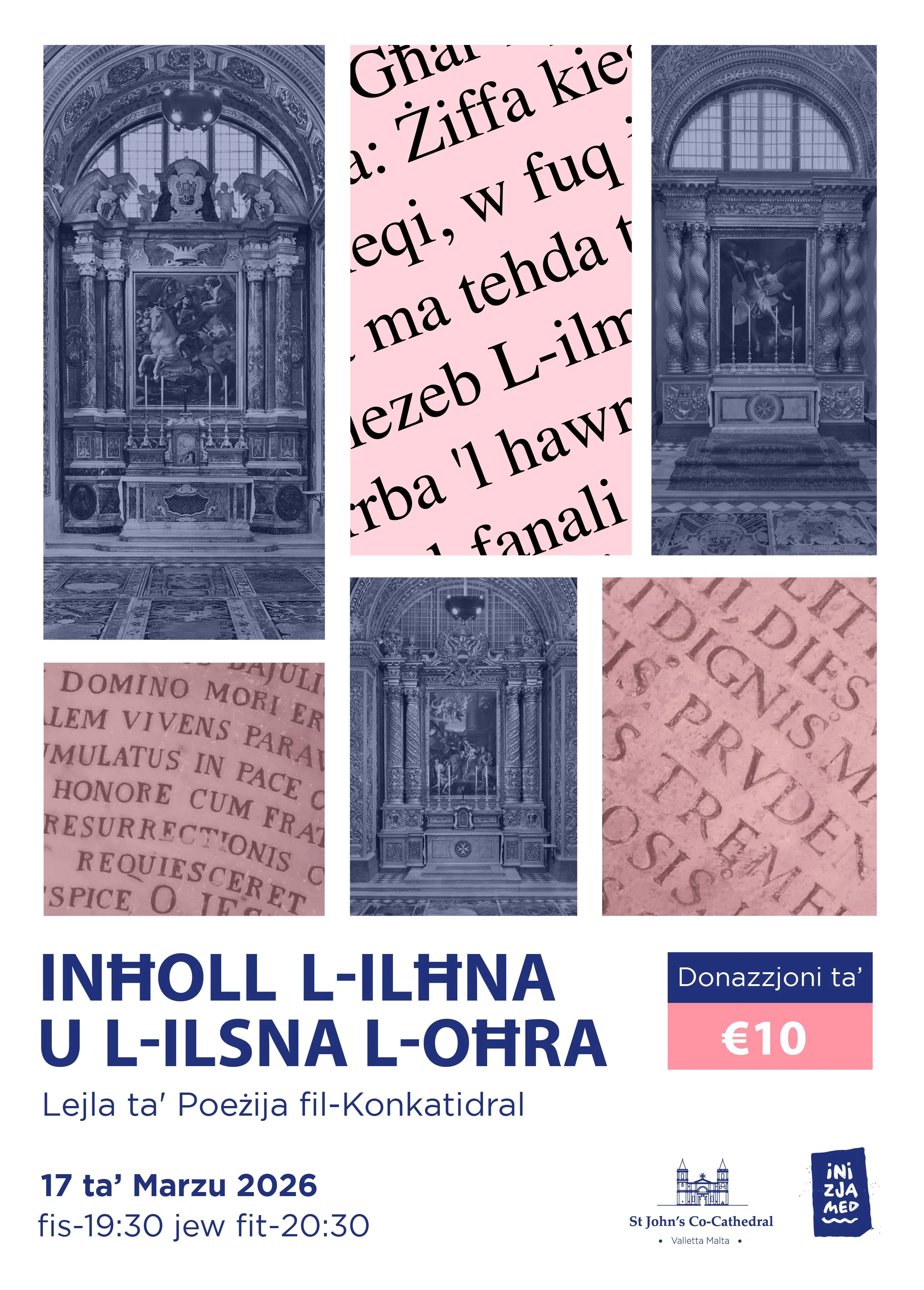 The official opening of the Malta Biennale 2026 will take place on March 10 at the Sacra Infermeria, Mediterranean Conference Centre, in Valletta. Leanne Ellul has written the poetical text for the third day of creation entitled “Mill-Ilmijiet sal-Inxufija” which is musically composed by Euchar Gravina.